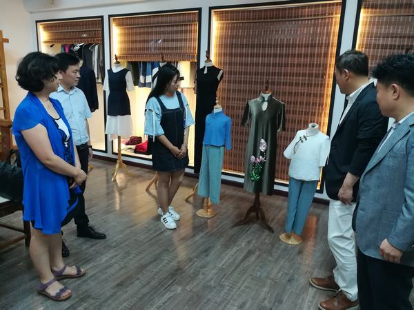 学院副院长梁菊红(左一)陪同参观舜唐中式服饰文化研究院