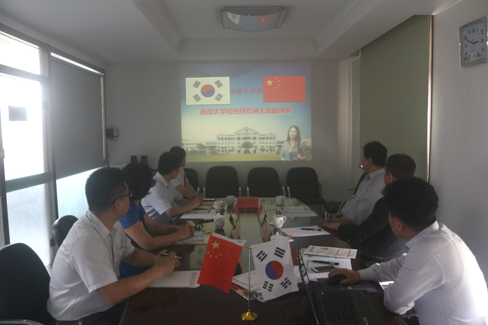 6月28日,韩国南部大学(Nambu University)国际协力团黄民救团长、韩国教育院(研究生院)曹仁焕教授、李承哲教授,山东志向教育集团王忠飞总经理等一行5人到校交流国际合作事宜。学院梁菊红副院长、继续教育处处长房屹代表学院接待访问团。