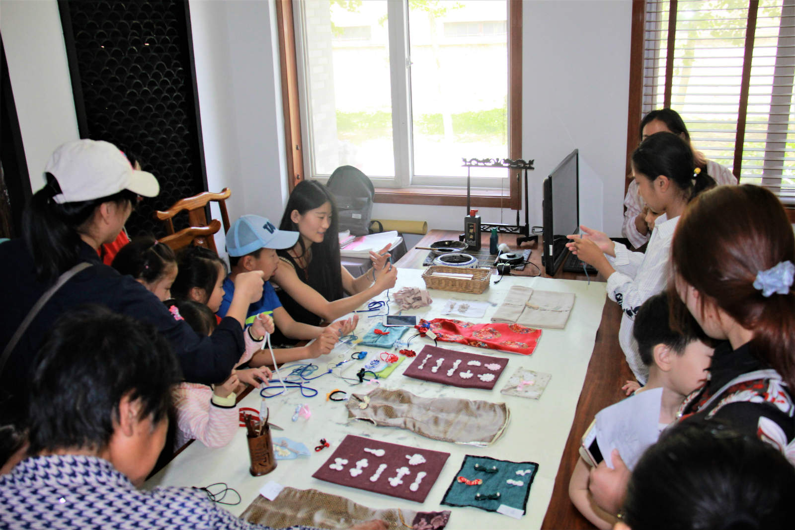 小学生们在舜唐中式服饰文化研究院学习盘扣制作