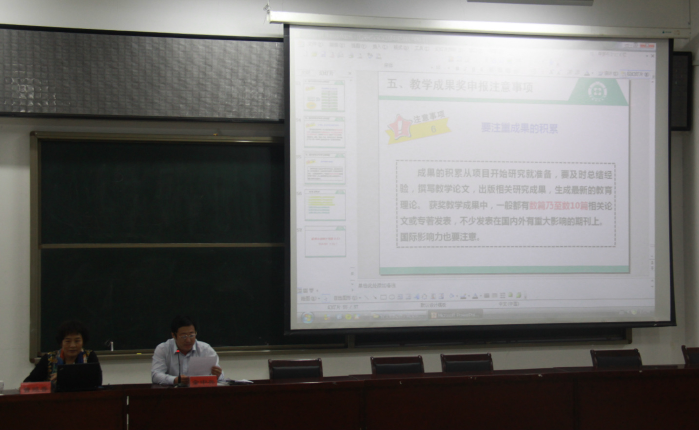 曾照香教授从国家教学成果奖的历史、如何申报、准备过程中的注意事项等方面做了详细介绍。讲座内容丰富、实用,为教师教学成果申报工作指明了方向,获得我院教师一致好评。