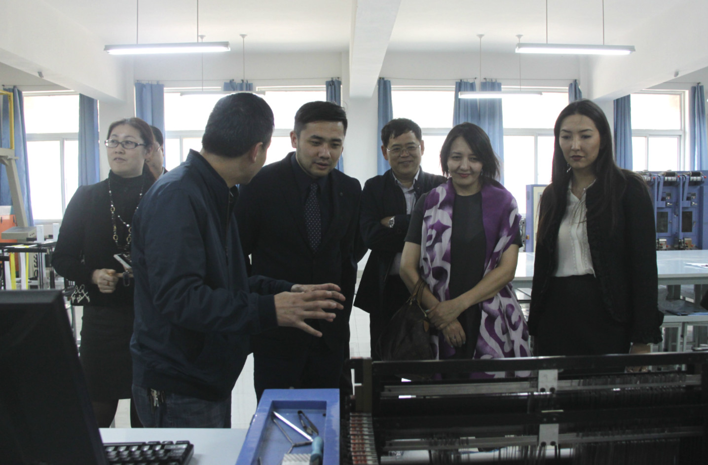 4月18日下午,哈萨克斯坦阿拉木图管理大学校长卡纳格托娃·阿尔玛古丽一行3人访问我校。学院党委书记牛圣银陪同客人参观了轻化工程系、纺织服装工程系校内实训室和舜唐中式服饰文化研究院。