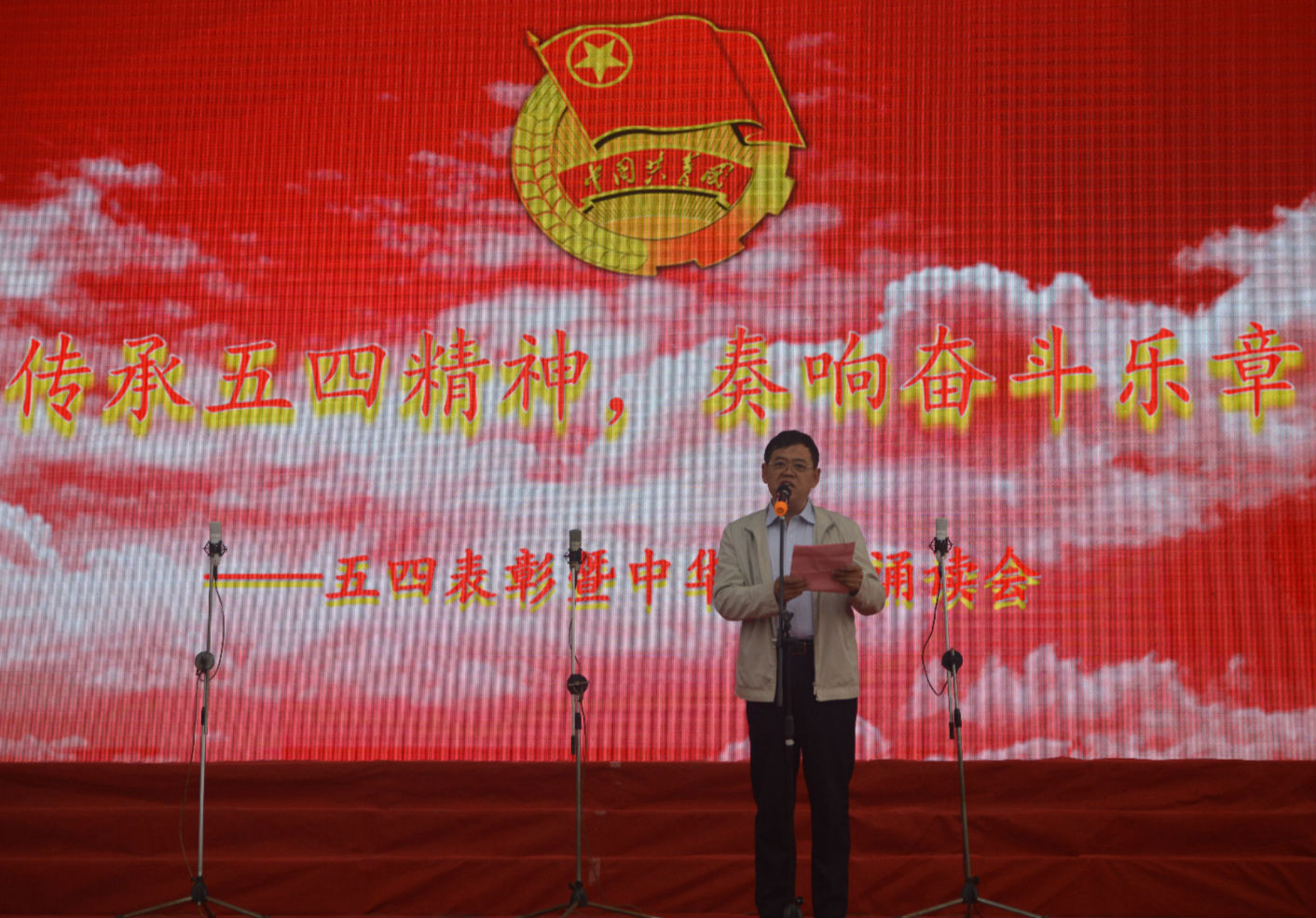 颁奖仪式结束后举行中华经典诵读会。本次诵读会分三个篇章:《团旗飘飘·扬风帆》、《激扬青春·忆峥嵘》、《五四青春·沁芳华》。同学们用一首首经典诗词诵出了学子们对党和祖国深深的热爱,诵出了共青团员的光荣与自豪,诵出了山东轻院大学生朝气蓬勃、追求卓越的精神风貌,声声飘过,余音绕梁。