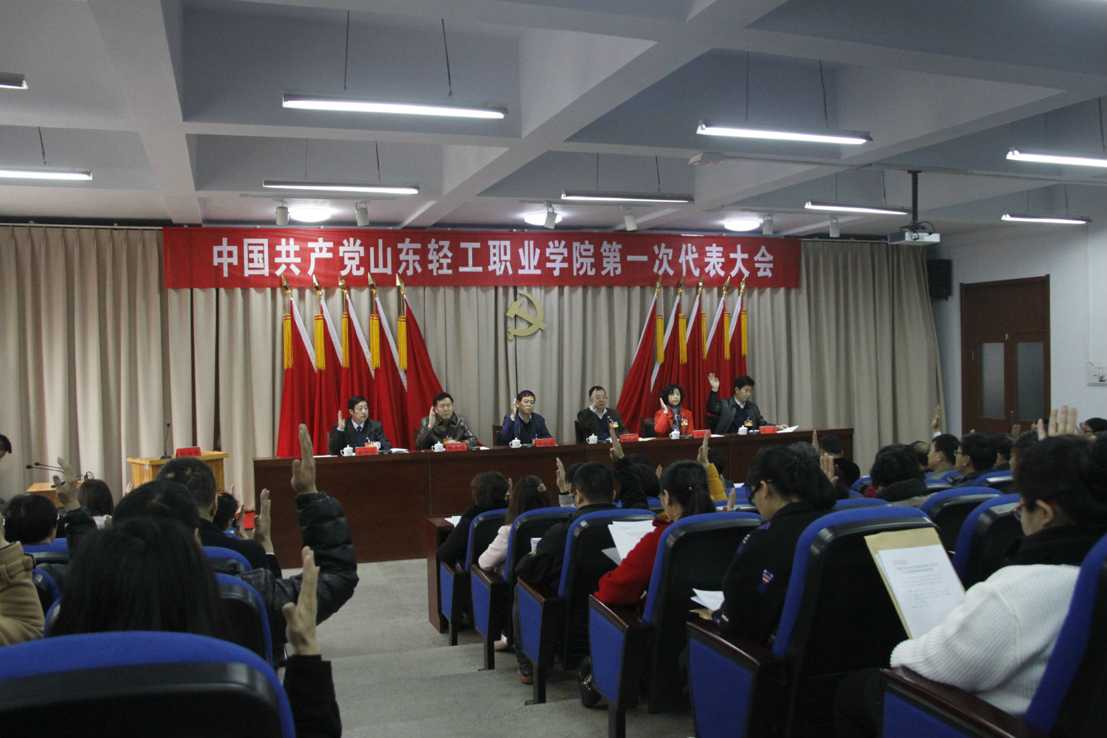 会议还表决通过了第一次党代会议程。此次会议共有4项议程:听取和审查中国共产党山东轻工职业学院委员会的工作报告;听取和审查中国共产党山东轻工职业学院纪律检查委员会的工作报告;选举中国共产党山东轻工职业学院第一届委员会;选举中国共产党山东轻工职业学院纪律检查委员会。