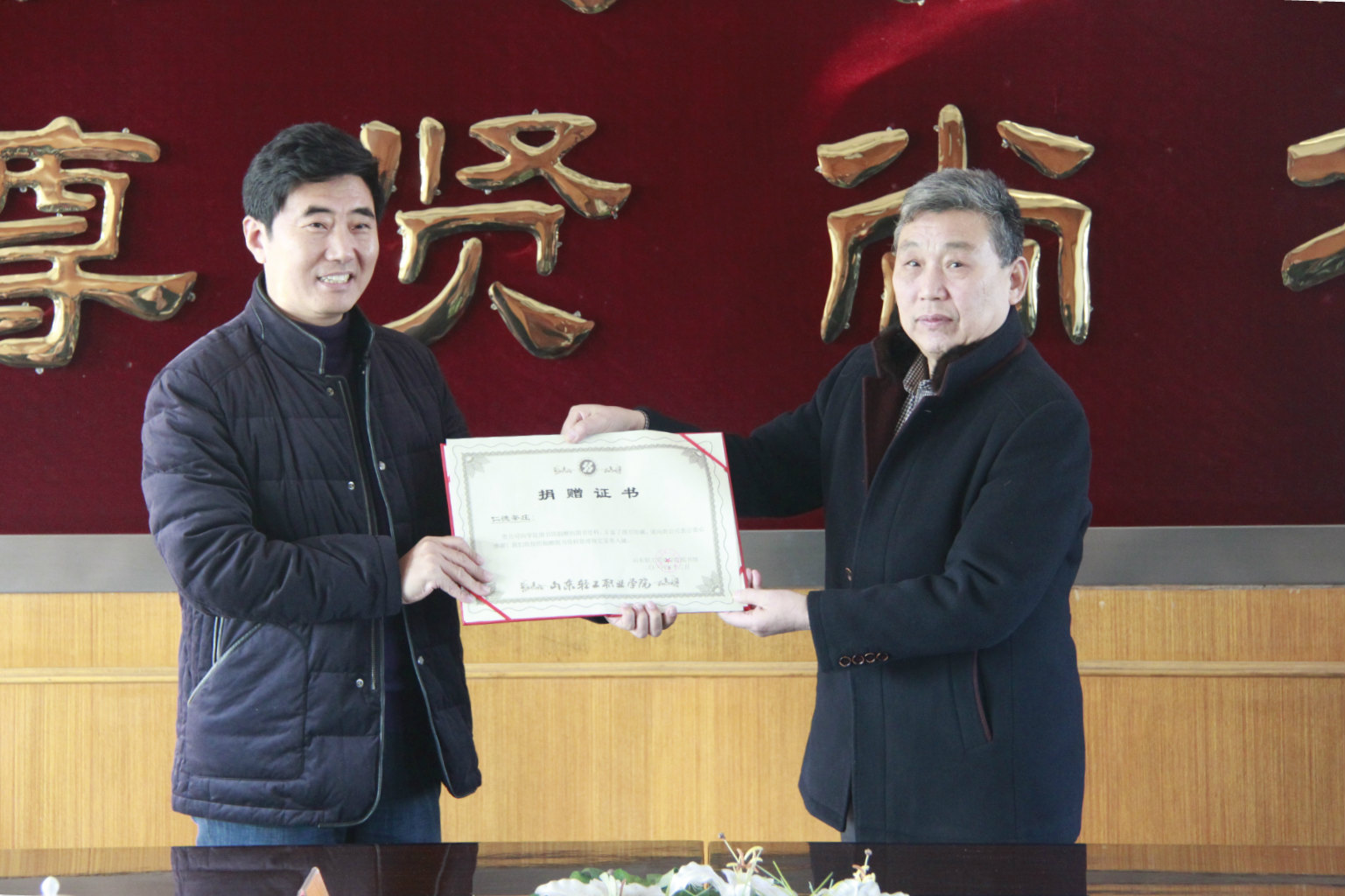 近日,淄博市齐善助学服务中心会长、仁德茶庄总经理牛志卜一行来到学院,为学院捐赠价值1万元的爱心图书。学院工会主席公昆出席捐赠仪式。相关处室负责人参加捐赠仪式。