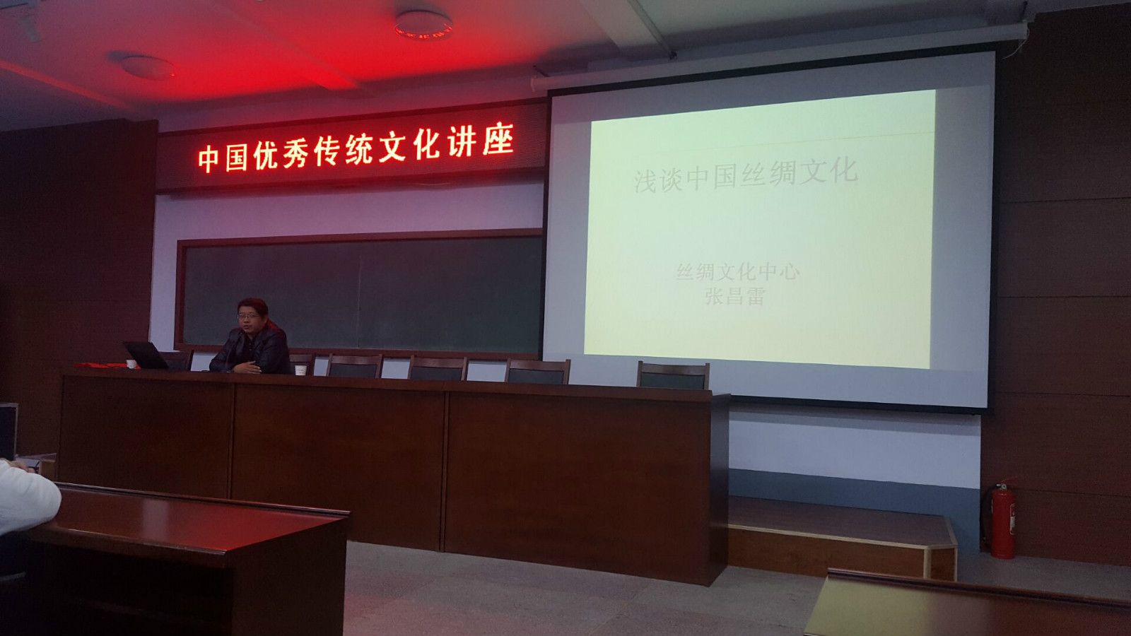 为了更好的传承和弘扬中华优秀传统文化,结合我院实际,德育处于2016年11月16日下午四点在图书馆二楼法治教室面向全院学生举办了中华优秀传统文化之丝绸文化专题讲座。此次讲座邀请我院丝绸文化创意中心主任张昌雷老师担任主讲嘉宾,德育处处长唐平涛老师主持,来自我院各系的近百名学生代表及马克思主义理论研究社全体成员参加了讲座活动。