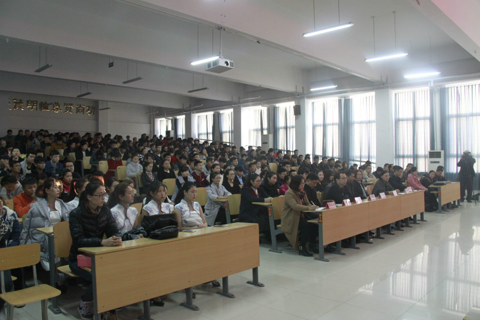 11月16日,学院2016年度奖学金表彰大会在第六教学楼506合堂教室举行。学院领导王纯国、张玉惕、梁菊红、明绪田、余中兴、公昆出席大会。教务科研处、学生工作处、团委全体人员,各系主任、辅导员、班主任、获奖学生及部分学生代表参加会议。大会由学院工会主席公昆主持。