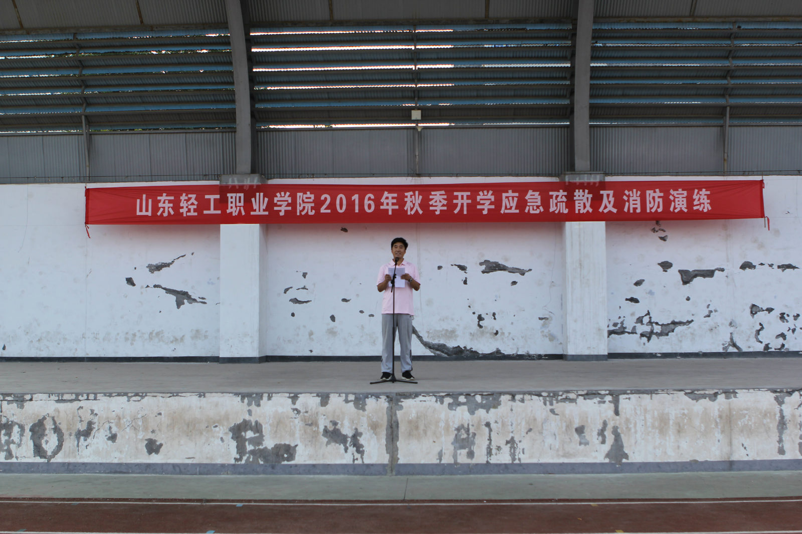9月8日下午15:00,学院举行2016级新生应急疏散和消防演练活动。学院党委委员、工会主席公昆,淄博市人防办法宣科科长于肪,周村区人防办公室党组书记、主任韩波,周村区应急办主任张海燕、周村区丝绸路派出所副所长徐文等有关部门人员出席活动并现场观摩。学院相关部门负责人、各系学生工作负责人和2016级新生共计2500余人参加了本次活动。