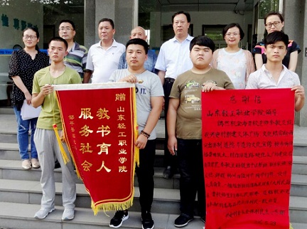 在本次活动中,我系针对兴安村文体广场内闲置的墙面开展了文明墙绘,将法制、道德、孝道等宣传用语以漫画的形式绘制到墙面,不仅美化了社区环境同时也倡导了文明健康的行为和理念。兴安村村委会及全体村民为感谢我系师生们服务社会和无私奉献的精神,特地送来锦旗和感谢信并希望这种精神大力发扬下去。此次活动得到了学院的大力支持,并对参与的学生:宋帅、邱耀、宋成稳、杨洲等提出表扬。本次活动在服务社区的同时,不仅提高了我系当代大学生的综合素质,也展现了我们艺术设计系的人文风采。(艺术设计系 樊婷婷)