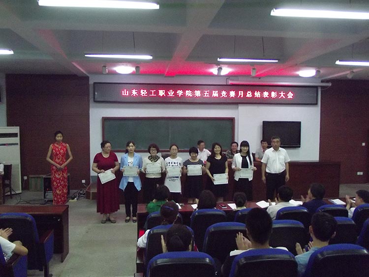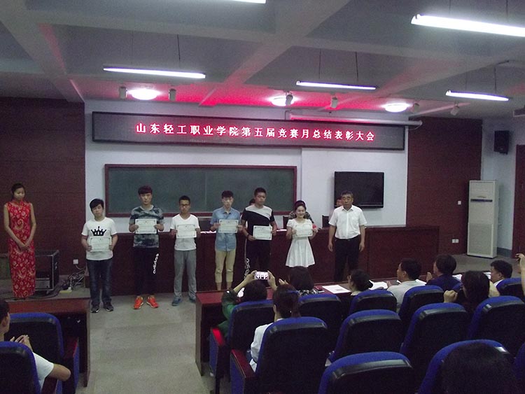 5月31日,山东轻工职业学院第五届竞赛月活动总结表彰大会在图书馆二楼法治教室举行。学院领导孙志斌、张玉惕出席大会。学院相关系、处室负责人,各系教学副主任、教研室主任、第五届竞赛月获奖师生、淄博市第六届职业(技工)院校技能大赛我院一等奖获奖师生、2015年度山东省职业院校技能大赛我院获奖选手及指导教师、学生代表等140余人参加会议。大会由教务科研处处长刘仰华主持。