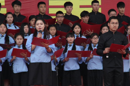 充满青春与活力的开场舞拉开了大会序幕。学院工会主席公昆在大会上致辞。表彰会上,学院领导为受表彰的省、市、院级先进集体、个人颁发牌匾和荣誉证书。诵读会上,同学们的朗诵铿锵有力,激情洋溢,将爱国精神抒发的淋漓尽致,教师们的节目《相信未来》将朗诵会引入高潮。