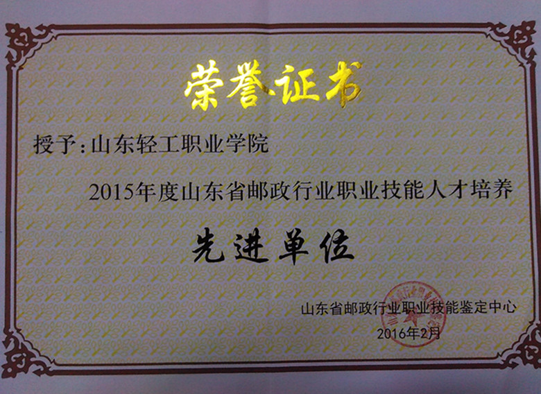 我院被评为2015年度山东省邮政行业职业技能人才培养先进单位