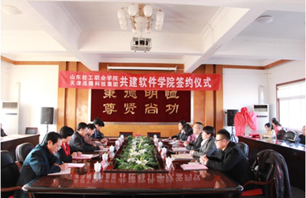 会上,院长孙志斌与天津滨海迅腾科技集团有限公司董事长邵荣强签署了校企共建软件学院合作协议,并为软件学院揭牌。校企共建软件学院将全面实施校企融合管理模式,软件学院院长何晓刚由迅腾科技集团委派,副院长将由双方各委派1-2名,软件学院全面实施理事会领导下的院长负责制,实施企业化管理,充分发挥企业在教学管理过程中主导权,发挥企业化人才培养优势,从而提升人才培养水平。