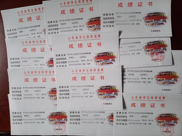 学院田径代表队在2015年山东省大学生田径锦标赛上摘金夺银