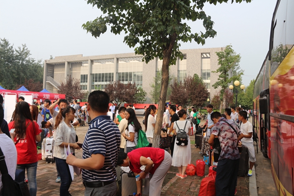 清晨6:00,伴着晨曦第一班的接站志愿者已在淄博火车站、淄博汽车站的出站口等候。每当有新生从出口走来时,热情的迎新志愿者们主动上前帮忙搬运行李,提供咨询导航,让新生与家长备感亲切。