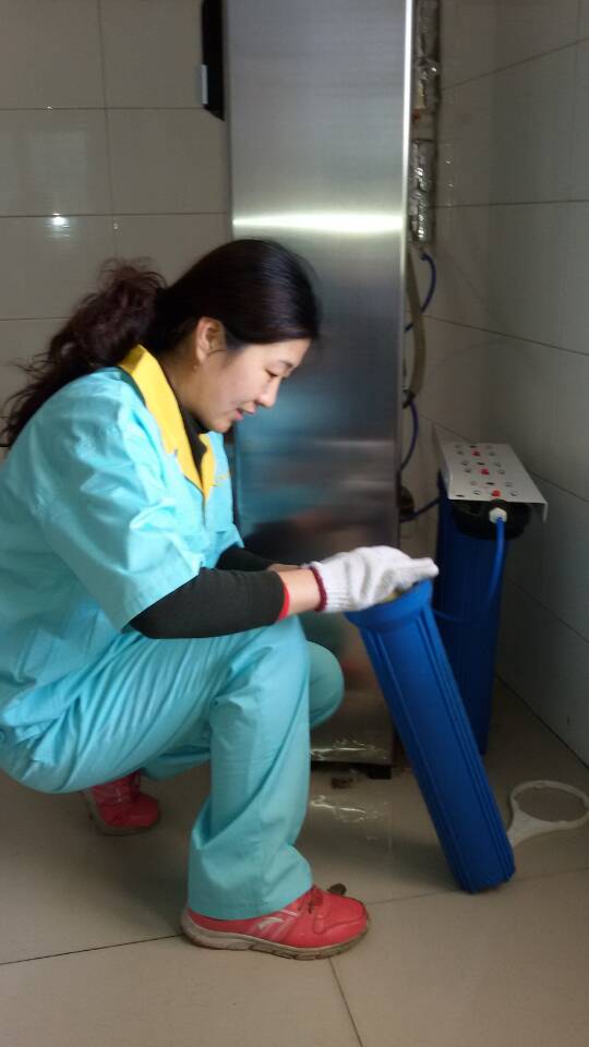 工作人员认真清洗直饮水设备,逐个更换净水滤芯,对出现的各种故障也进行了及时维修和处理。工作人员还对现场水质进行了达标测试。
