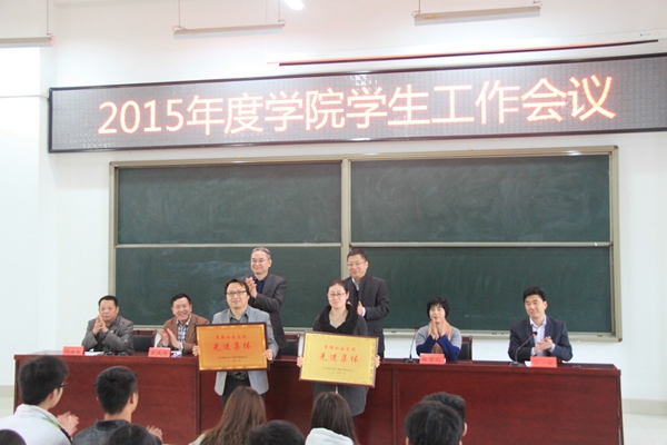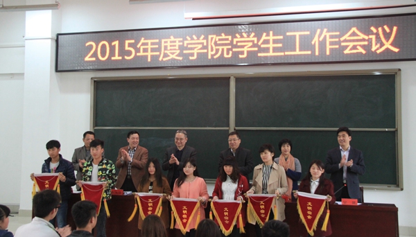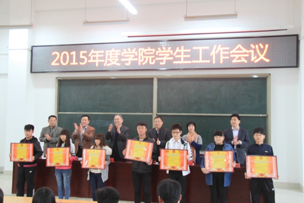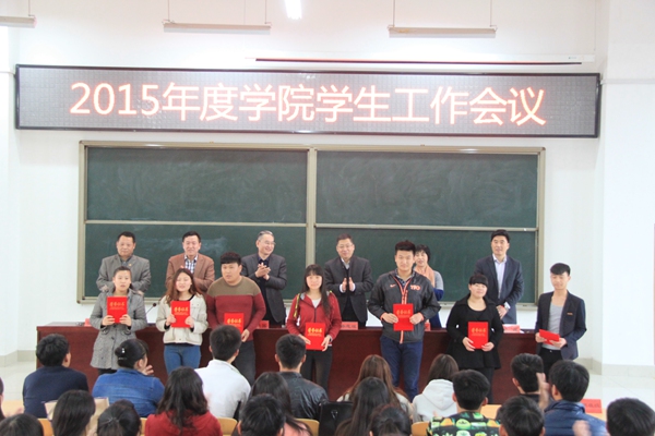会上学生工作处处长吕志江首先作了《凝神聚力,勇于创新,努力开创学生工作新局面》的学生工作汇报,回顾了2014年的工作,明确了2015年的工作重点。表彰环节,张玉惕副院长宣布《关于表彰文明教育活动先进集体和个人的决定》;梁菊红副院长宣布《关于表彰寒假大学生社会实践活动先进集体和先进个人的决定》;明绪田副院长宣布《关于表彰文明宿舍的决定》,与会学院领导向先进集体和七类先进个人代表隆重颁奖。