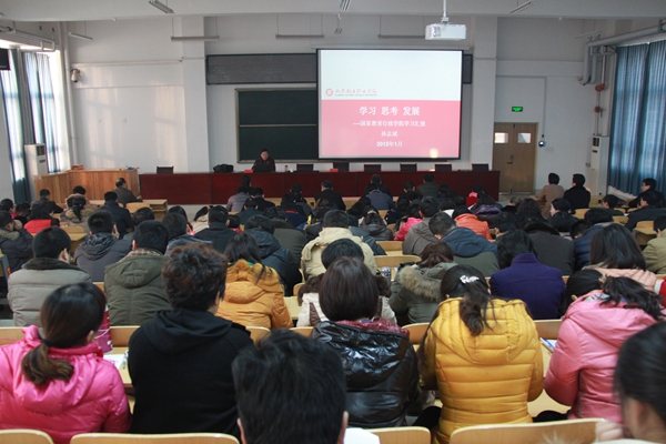 1月12日,第七期学习论坛在学院J6506开讲。院长孙志斌主讲本期论坛,学院全体专兼职教师聆听讲座。学习论坛由学院党委副书记、纪委书记余中兴主持。