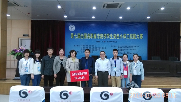 10月24~26日,第七届全国高职高专院校学生染色小样工技能大赛在福建三明职业技术学院举行。山东轻工职业学院轻化工程系染整技术专业代表队共有五位同学参赛并全部获得奖项,其中,任文凤、张汶汶荣获个人一等奖,张信、李岩、孙小婷荣获个人三等奖,学院教师王开苗、梁颜玲荣获优秀指导教师奖,学院代表队荣获团体奖励二等奖。