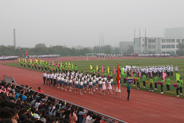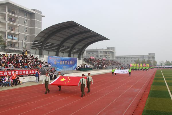 伴着雄壮的运动员进行曲,入场式正式开始。在国旗和五环旗的引领下,来自学院七个系200余名参赛选手陆续入场,他们个个朝气蓬勃、精神抖擞,不时微笑着向观众挥手致意,现场观众用热烈的掌声和欢呼向他们致意。在接下来的2天里,他们将在28个项目中同场竞技。