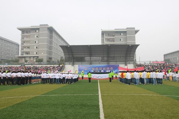 随后,裁判员代表及运动员代表分别上台庄严宣誓。院长孙志斌宣布山东轻工职业学院第一届田运动会开幕。