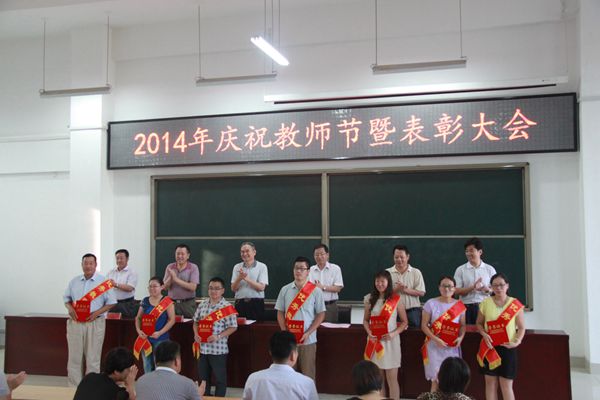 副院长张玉惕宣读《关于表彰2013-2014学年教育教学先进集体、优秀教师、优秀班主任(辅导员)和先进教育工作者的决定》,工会主席公昆宣读《关于表彰2013-2014学年先进工会小组、优秀工会干部、工会积极分子的决定》。随后举行颁奖仪式,学院领导向受表彰教师代表颁发荣誉证书。颁奖仪式结束后,学生代表和教师代表分别上台发言。