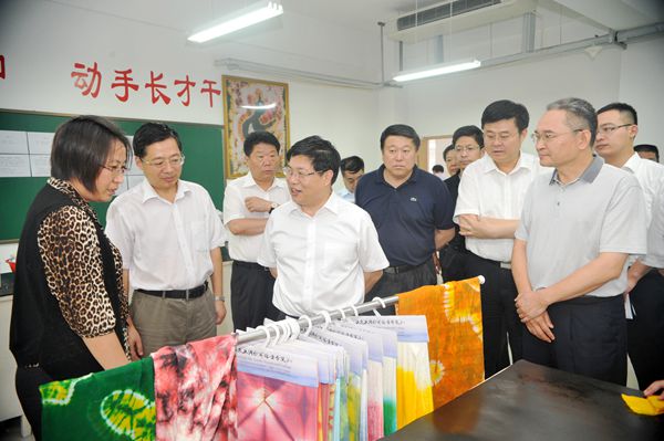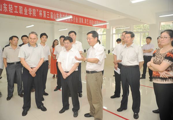 徐景颜一行先后到学院体育场、轻化工程系实训室、第三届山东省工艺美术行业(黑陶、陶艺)技能大赛作品展厅进行实地察看。在体育场,徐景颜观看学院2014级新生军训,详细听取学院招生、就业、教育教学改革和校企合作等相关情况汇报,对学院近几年快速发展、学生数量规模增长表示满意。在轻化工程系实训室,徐景颜与师生亲切交谈,详细询问学生学习生活情况,对学院实训教学工作给予肯定。随后参观了工艺美术行业技能大赛决赛获奖作品展,对学院不断创新人才培养模式、注重人才培养质量给予充分肯定,并希望学院继续沿着校企深度合作和特色品牌的发展道路不断前进,为全市经济发展和社会进步作出更大贡献。
