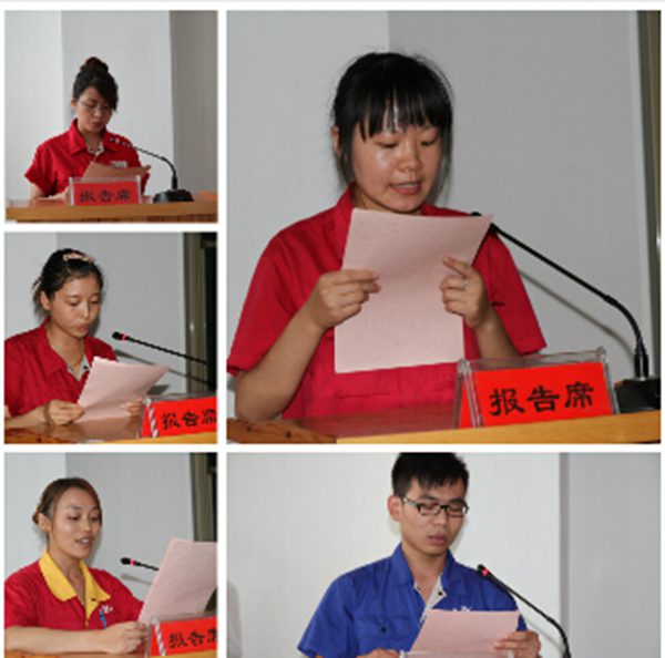 来自鲁泰纺织股份有限公司生产一线的五位劳模、标兵先后发言,他们都是毕业于我院的优秀毕业生。他们结合个人工作实际和生活经历,朴实、生动地讲述了他们对生活的感悟、对职业的理解、对工作付出。他们用自身优异成绩教育和引导在校大学生,一要有明确的目标追求和坚定的理想信念,二要努力学习,扎实掌握专业知识和专业技能,三要有吃苦耐劳,勇于拼搏,乐于奉献的精神。他们用行动和成绩告诫同学:要想人生出彩,一靠理想,二靠奋斗。