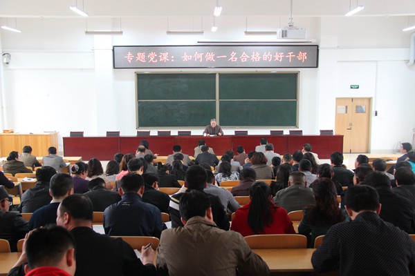 为深入开展党的群众路线教育实践活动,进一步提高党员干部履职能力,使实践活动真正取得实效,4月11日,学院党委书记王纯国结合工作实际以“如何做一名合格的好干部”为主题,讲了一堂生动深刻的党课,全体党员、科级以上干部参加了学习。