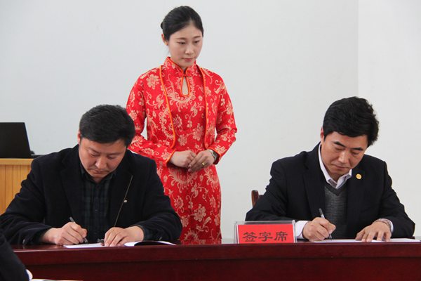 学院工会主席公昆(右一)与相关部门负责人签署责任书