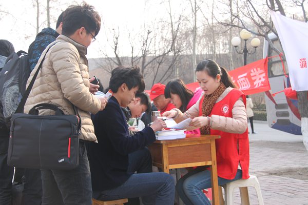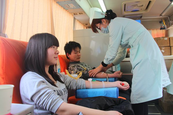 3月3日,学院团委与淄博市血站携手在大学生文化广场组织义务献血活动。下午2点,青年志愿者们就赶到大学生文化广场做好宣传、组织等准备工作。3点左右,淄博市血站的医生开始为大家讲授献血的必要知识和注意事项,介绍这次献血活动的主要过程。稍后,同学们开始排队领取登记表,认真填写,并按表中的要求到指定位置验血以确定自己的血型。准备就绪后,大家在献血车旁边按顺序上车献血。许多同学坚持要献出400毫升血,以此传递一份爱心,传播一种文明。