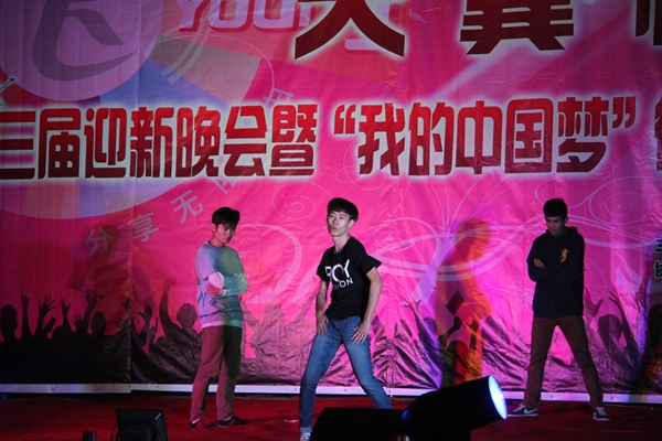 伴着徐徐的秋风,在同学们热烈地掌声中迎新晚会拉开帷幕。晚会内容丰富,可谓百花齐放,舞蹈、相声、服装表演、武术应有尽有,仿佛置身于艺术的殿堂。随着轻快的音乐,演员们舞步轻盈、翩然而至,动感的街舞表演将青春色彩诠释的淋漓尽致、欢快的歌曲让人仿佛置身其中。一段由街舞社团带来的劲舞表演,将全场气氛推向高潮。在激情的呐喊声中,姜顺然、高健鹏为我们带来的相声表演,引得台下笑声连连;而由武术社团表演的双节棍更是引爆全场,掌声雷动。接下来双人舞舞、爵士舞、琵琶独奏等多元化的精彩节目,始终吸引着全场观众的眼球,掌声笑声不绝于耳。伴随着欢乐的节拍,模特社团表演的时装秀节目,再次将晚会推向高潮,曼妙的走姿,婀娜的形体,成为舞台上一道靓丽的风景。