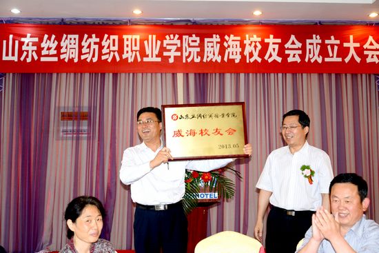 梁菊红副院长宣读了山东丝绸纺织职业学院威海校友会组织机构和组成人员建议名单并提交大会表决,大会通过了建议名单。山东丝绸纺织职业学院孙志斌院长向威海校友会授牌,山东丝绸纺织职业学院威海校友会正式成立。
