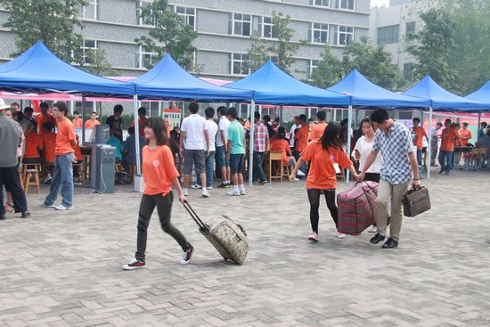 校园内彩旗飘扬,书写着温馨的迎新条幅为学院平添了节日的气氛,学院100余名团学干部和志愿者组成的“全天候服务队”,帮助学生缴纳学费、安置寝室、领取生活用品、解答疑问。同时,学院专门安排了“全天候”免费接送车,往返于学院与汽车东站、火车站、汽车总站之间,并安排专人现场调度车辆,保证新生随到随送。在报到现场搭建遮阳篷,并摆放桌椅,设置饮水区、医疗区、咨询区等为家长、新生提供便利的服务。他们热情周到的服务,赢得了新生及家长的一致好评。