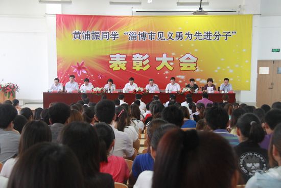 黄浦振同学“淄博市见义勇为先进分子”表彰大会在山东丝绸纺织职业学院举行