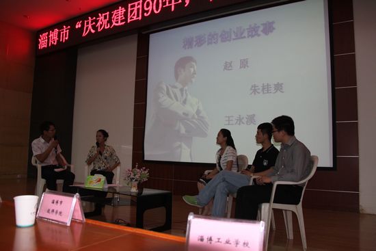 5月12日,淄博市团市委组织的“关注我们”优秀大学生创业访谈节目在淄博职业学院举行,我院优秀创业大学生代表信息工程系赵原同学参加活动。活动中,赵原同学向大家介绍了开始创业的艰辛及过程中的难忘的点点滴滴,以及来自同学们、老师们和学院的的关爱和鼓励,赵原同学表示,不管做什么事都要怀着一颗感恩的心,来回报父母,回报学校,回报社会。(通讯员 王茜)