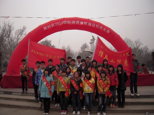 为了使广大学生能够更多的了解消费者的合法权益,维护自身的合法利益,在3·15“国际消费者权益日”到来之际,我院信息工程系志愿者配合周村区工商局于3月14日上午,在区人民广场前举行了以“消费与维权”为主题的法律咨询及千人签名活动。