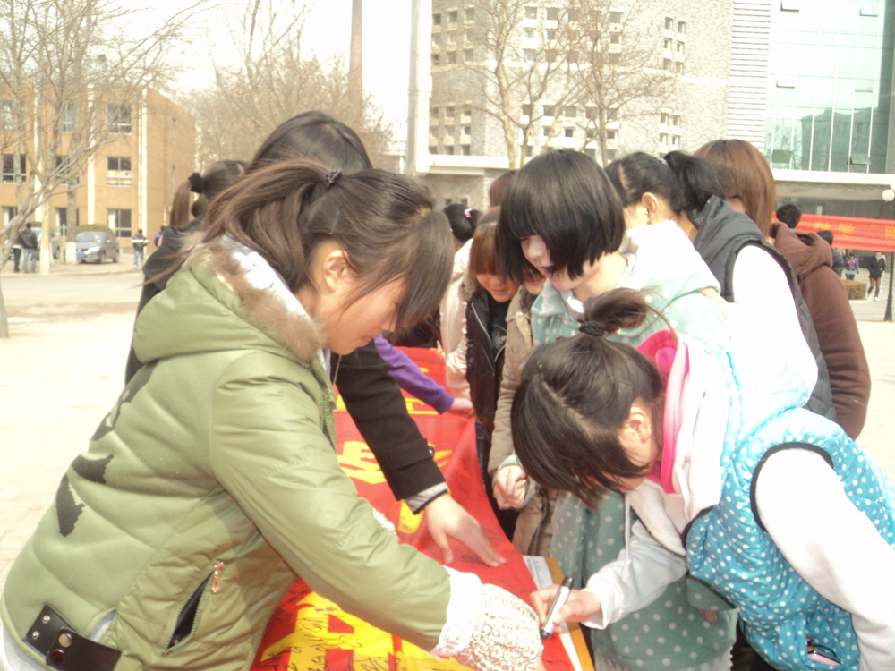 为在我院大力推广雷锋精神,加强雷锋精神在同学们心中的地位,增加同学们自觉帮助他人的优良美德和积极向上的生活方式。我院院学生会及各系学生会相继组织开展了学习雷锋精神签字活动。号召全校师生广泛、深入地开展“向雷锋学习的活动”,以实际行动为学院的发展贡献自己的力量,让同学们人人学雷锋、天天有雷锋、使雷锋精神遍布校园;把学习雷锋当成实现人生价值的一个过程,让校园成为一个更加温暖和谐的家园。(院学生会)