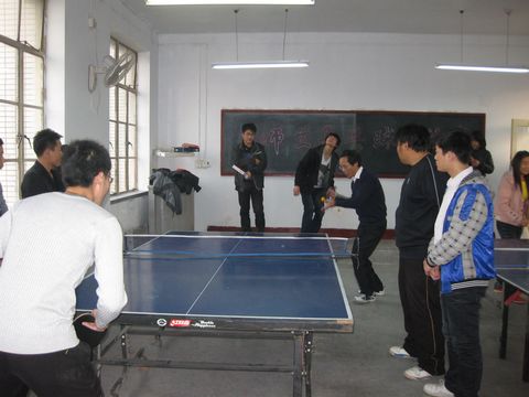 为深入贯彻实施我院全民健身计划,丰富师生的业余文化生活,促进和谐校园建设,师生乒乓球联谊赛于11月22日-23日在学院乒乓球活动室举行。本次活动由学院工会、团委联合主办,比赛设置男子团体、女子团体两个项目,通过抽签决定五场较量的出场顺序。