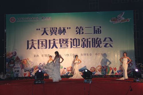 9月29日由学院组织人事与宣传处、团委主办,学生工作处、院学生会、中国电信协办的“天翼杯”第二届庆国庆暨迎新晚会在大学生文化广场举行。