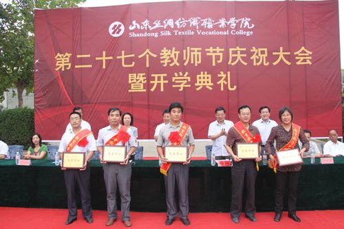 大会在庄严的国歌声中拉开了帷幕,会上,刘承新副院长宣读了《中共山东丝绸纺织职业学院委员会、山东丝绸纺织职业学院关于表彰2010-2011学年教育教学先进集体、优秀教师、优秀班主任(辅导员)和先进教育工作者的决定》,并对获奖集体和个人进行了表彰。优秀教师代表染化工程系教师杨秀稳和学生代表艺术设计系10动漫设计班朱星辰同学分别作了发言。