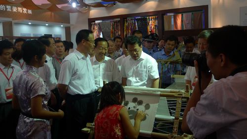 与往届不同的是,本届陶博会同时推出了“淄博琉璃·明清官窑”琉璃展和“丝绸之路·起点淄博”丝绸展两个特色展区,其中丝绸展馆由我院与周村区政府共同策划设计的。学院对本次活动高度重视,成立了以学院工会主席明绪田为组长,丝绸文化研究中心主任任光辉为副组长,高韬等为组员的工作小组,具体负责本次丝绸展馆的策划和设计工作。经过近一个月的精心筹备,终于顺利的完成了本次陶博会丝绸展馆的设计及布展工作,学院图书馆还为展馆提供了丰富的馆藏丝绸史料,充分展现了丝绸之路“淄博起点”的历史发展脉络,让观众切身感受到了丝绸文化的独特魅力。同时,学院还选派了各系优秀学生参与了展会的讲解和专业技能演示以及礼仪服务工作,突出了学院的专业特色和资源的优势。中央委员、全国政协经济委员会副主任、原国家工业和信息化部部长、中国工业经济联合会会长李毅中,淄博市委书记刘慧晏,市长周清利等中央、省、市领导参观丝绸展馆后,给与了充分肯定和高度评价。