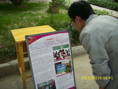 5月25日是心理健康活动宣传日,我院学生工作处举行了心理健康教育活动。活动主题是:“拥有健康心理,拥抱美好人生。”活动内容包括:心理健康图片展览,心理健康宣传横幅签名,发放心理健康资料,心理问询,心理趣味小测试等。活动受到广大同学的欢迎,大家认真地在宣传横幅上签上自己的名字。