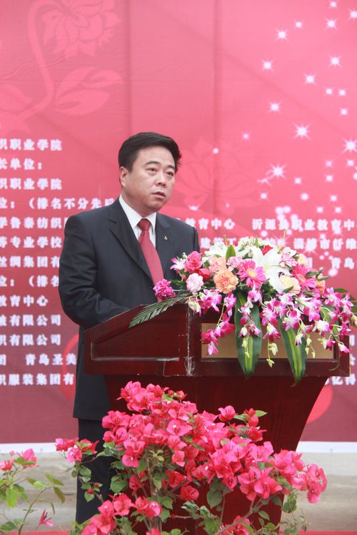 随后,山东省教育厅总督学徐曙光,淄博市人民政府副市长韩国祥,中国纺织服装教育学会会长倪阳生,山东省丝绸协会会长许华东为淄博市纺织服装职业教育集团进行揭牌。