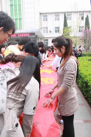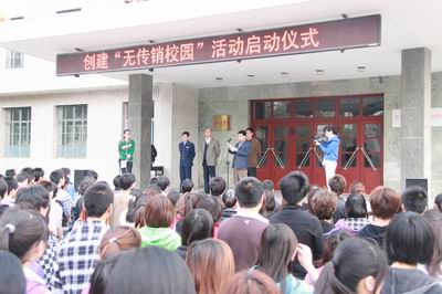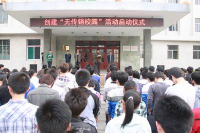 此次启动仪式是学院创建无传销校园系列活动的重要举措之一。目前社会上的非法传销活动存有不断向学校渗透的现象,此次创建无传销校园活动旨在推进平安和谐校园建设,增强大学生防范抵制传销的意识,拒绝传销黑手伸向校园,维护广大师生的合法权益。在启动仪式上,学生工作处处长吕志江宣读了学院《关于创建“无传销校园”活动具体实施方案》(鲁丝院字[2011]30号),对签名承诺远离传销活动、签订创建“无传销校园”责任书、举办“拒绝传销,从我做起”主题班会活动及举办“无传销校园”活动宣传周等活动进行了详细安排。