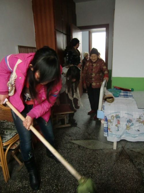 一到敬老院,同学们就走近老人身边或叙叙家常,或帮忙做事,打扫庭院、整理床铺……平时安静的敬老院因为同学们的到来而充满了欢声笑语,一张张灿烂的笑脸,驱散了老人的孤单,温暖了老人的心田。(通讯员 李晓妍)