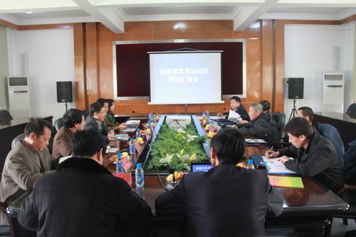 学院教务科研处处长曹修平进行了创建优秀运动队汇报,他主要从学院的组织领导、教练员队伍建设、训练场馆设施完善、经费保障到位、运动员队伍管理、教学与训练效果、国家学生健康体质标准实施状况、学生阳光体育实施情况等几个方面进行了汇报。