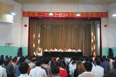 2010年9月10日,我院庆祝第二十六个教师节暨表彰奖励大会在学院文体馆隆重举行,表彰为学院发展建设做出突出贡献的教职员工,充分展现广大教师教书育人,敬业奉献的精神风貌,大力弘扬人民教师无私奉献的高尚师德。市高教办副主任杨广波、学院党委书记高素贞、院长孙志斌和其他领导班子成员、学院调研员、原学校校长李慎善同志、原副校长郑志山同志、原学校工会主席徐庆芝同志出席了大会。会议由院长孙志斌同志主持。