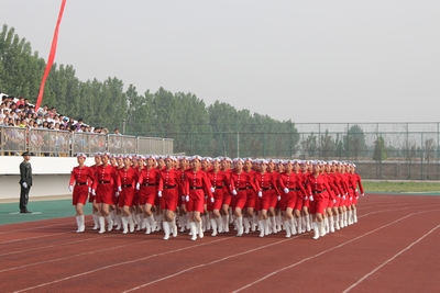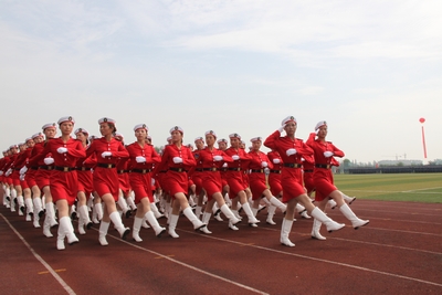 8点20分,阅兵正式开始,女子方队充满神采飞扬的装扮感染了全场,每一位队员都头戴白色贝雷军帽、身着红色女兵夏装、脚踏白色皮靴,飒爽的英姿赢得了全场观众的阵阵掌声。当方队行走在大会主席台前,随着“一 —— 二 —— 三 —— 四”激越嘹亮的口号,顷刻间全体队员正步行进,看!那挺拔的军姿,整齐的军容,英武的军威,为大会的精彩纷呈、增添了又一活力和亮点,观众席上掌声不断……