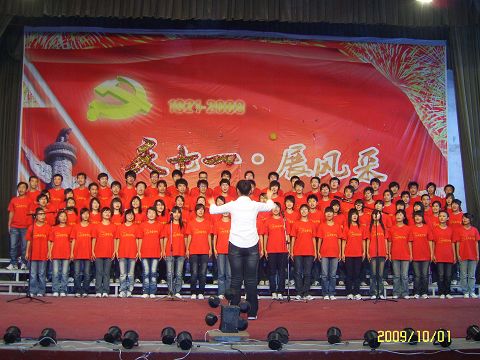 10月1日, “唱响主旋律 颂歌献祖国”庆祝新中国成立六十周年大学生合唱比赛在学院文体馆隆重举行。共有七支代表队14首以“歌唱祖国”为主题内容的颂歌昂扬及闪亮登场。此次活动受到了学院领导的高度重视和大力支
