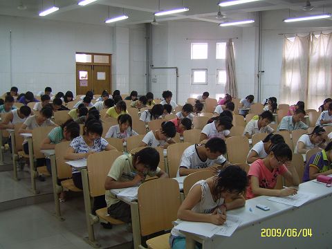 2009年6月4日下午,我院第十四期党校学员在多媒体和新教106合堂教室进行结业考试。在考场上,180余名党校学员仔细作答,认真对待每一道题,严守遵守考试纪律,在严肃的氛围中聚精会神地答卷。相信同学们经过此次考试会更加明白身为一位党员应该履行的权利和义务,为迈进组织大门打下良好的基础。